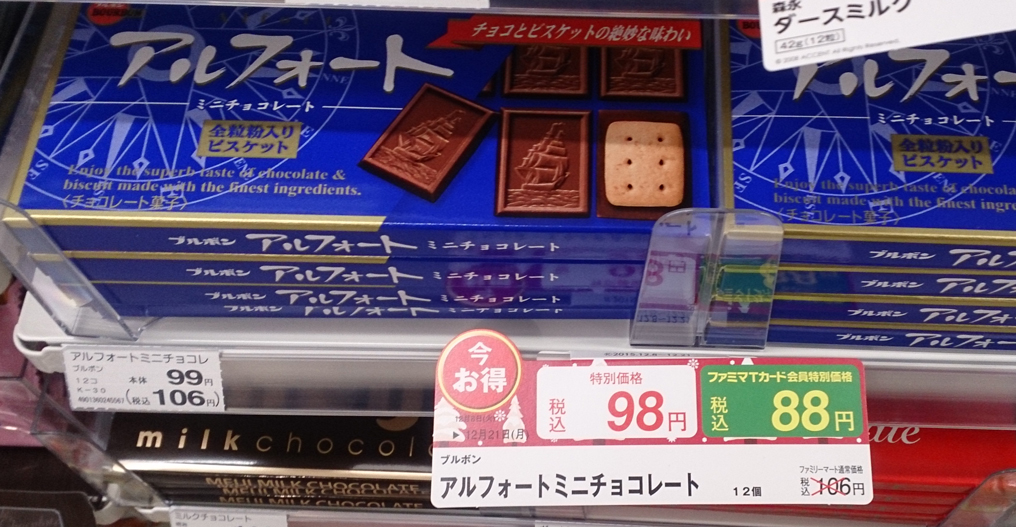 ファミリーマートの店内を歩くと商品の一部に「今お得」ラベルがついているものがあります。