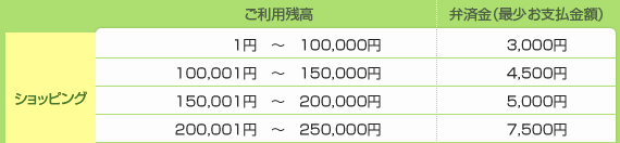 - 1円〜10万までの利用残高なら毎月3千円ずつの支払い