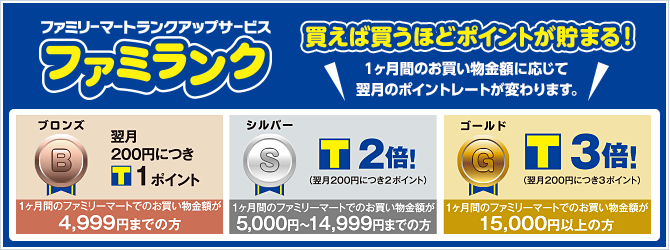 ※ファミランクはファミマTカードをファミリーマートで利用する時だけの特典です。