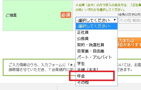 ↑↑ご職業選択においてきちんと「年金」という表記があります。